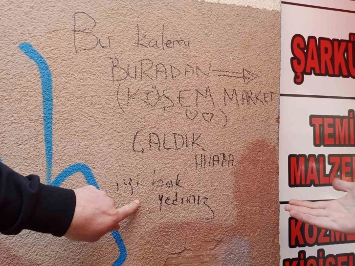 Esnaf Batuhan Alkan, bahsi geçen yazıyı yazanların çocuk ya da üniversite öğrencisi olduğunu tahmin ettiklerini söyledi. Yazının dükkandan çalınan bir kalemle yazıldığını belirlediklerini ifade eden Alkan, "Biraz üzerinde araştırma yaptık ama kendilerini bulamadık. Karşımızdaki duvara da aynı yazıyı yazmışlardı, onu sildik. Bildiğiniz trollemişler. Yazının altında bir başka yazı daha var, onu ayrıca yazmışlar. Bu yazıları aynı gün içerisinde yazmıyorlar, ertesi gün tekrar başka bir şey yazıyorlar. Sonradan güvenlik kamerası takdırdık zaten. Ben buradan o kalemi çalanlara seslenmek istiyorum, yazıyı boşverin de kalemi getirin kardeşim. Kalem önemli" dedi.