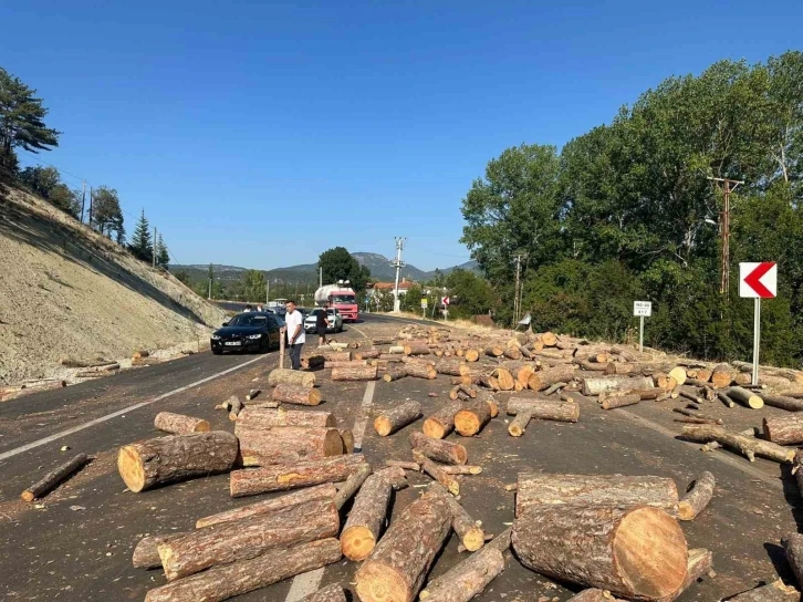 Bolu’nun Mudurnu ilçesinde seyir halindeki kamyonda yüklü olan odunlar yola saçıldı. Gidiş-geliş olan yolda trafik aksadı.