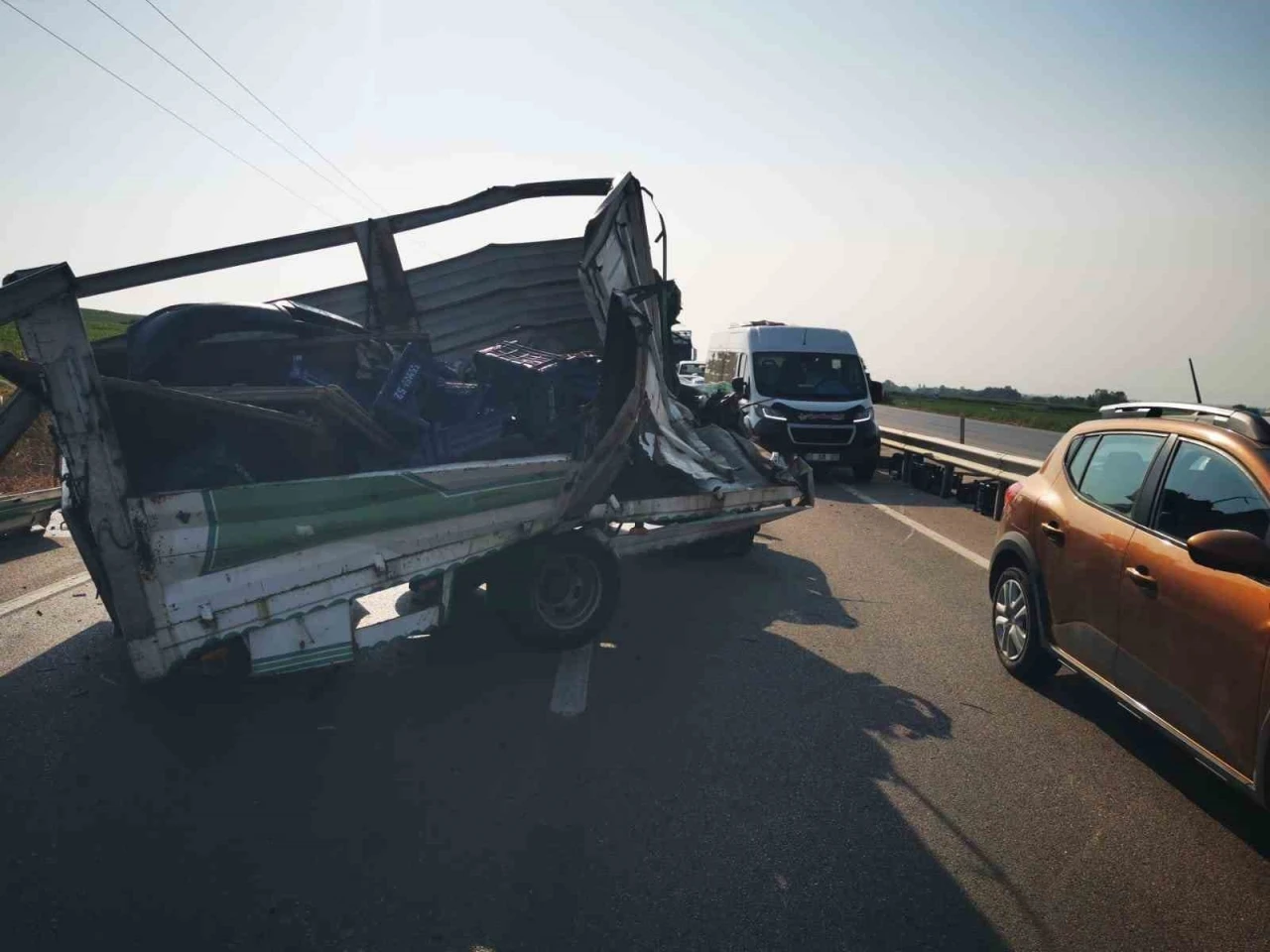 Osman Ü. (43) idaresindeki 16 YV 733 plakalı kamyonet aynı yönde seyreden Sait B. yönetimindeki 63 AGN 117 plakalı kamyona arkadan çarptı. Kamyonette bulunan sürücü Osman Ü. yaralı olarak Karacabey Devlet Hastanesi’ne sevk edildi.