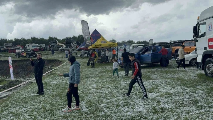 Düzce’de aniden bastıran yağmur yerini doluya bıraktı. Ceviz büyüklüğündeki dolu yağışı yeri beyaza bürüdü.