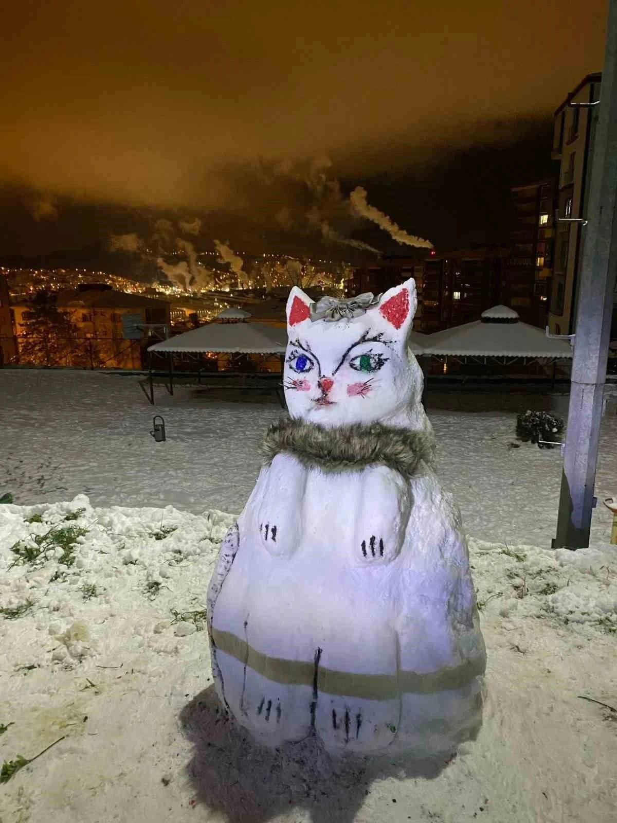 Zonguldak’ın Ereğli ilçesinde etkili olan yoğun kar yağışı, vatandaşları hem zorladı hem de eğlenceli anlar yaşattı. İlçede yaşayan Sıla Ummak ve Gülendam Karataş, yaklaşık 2 metre yüksekliğinde dev bir kardan kedi yaparak dikkatleri üzerine çekti.