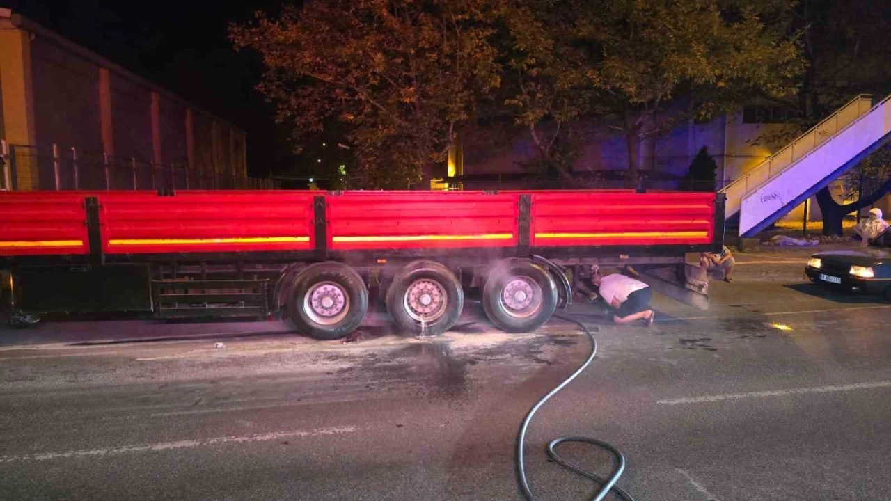 Zonguldak’ın Ereğli ilçesinde, seyir halindeyken bir tırın dorsesinin arka lastikleri alev aldı. Olayda can kaybı yaşanmazken, sürücünün dikkati ve çevredeki araçların uyarısı sayesinde facia önlendi.