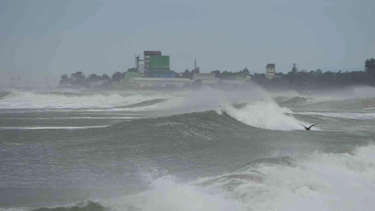 Ordu’da denizde etkili olan rüzgar nedeniyle kıyıya vuran dalgaların boyu 3-4 metreye ulaştı.