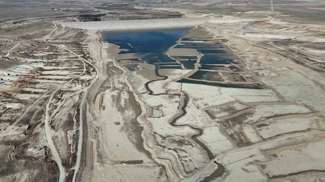 Karaman’ın 50 yıllık içme ve tarımsal sulama suyu ihtiyacı için yapılan, 5 yıl önce yüzde 100 doluluk oranına ulaşan İbrala Barajı şimdilerde tamamen kuruma noktasına geldi. Havadan çekilen görüntülerde barajın yapımı için kamulaştırılan bahçe ve tarlaların izleri ortaya çıktı.