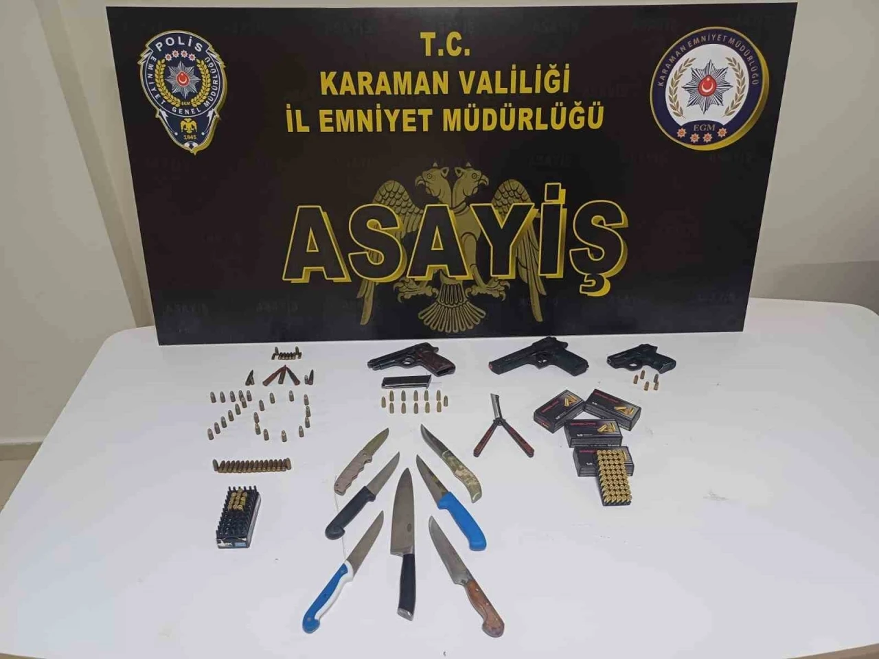 Karaman’da polisin yaptığı asayiş uygulamalarında uyuşturucu ve ruhsatsız silahlar ele geçirilirken, çeşitli suçlardan aranan 10 şahıs tutuklandı.