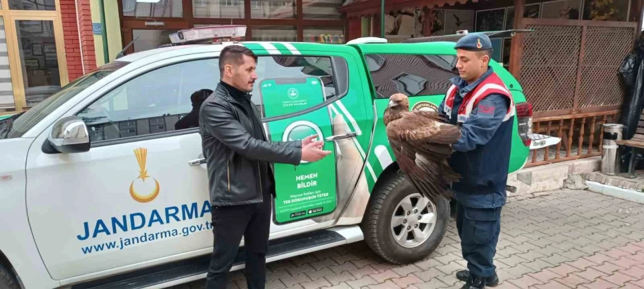 Karaman’da vatandaşlar tarafından bulunduktan sonra jandarmaya teslim edilen yaralı Kızıl Şahin, tedavisinin yapılması için koruma altına alındı.