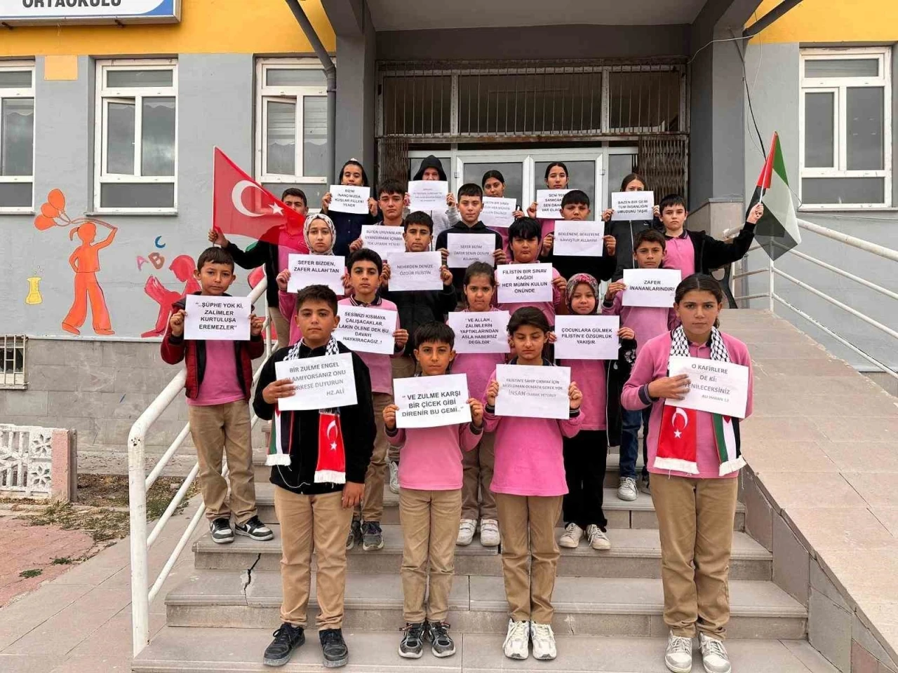 Konya’nın Karapınar ilçesinde ilk ve ortaokul öğrencileri, Filistin’de yaşanan insan hakları ihlallerine dikkat çekmek ve duyarlılık oluşturmak amacıyla farkındalık etkinliği düzenledi.