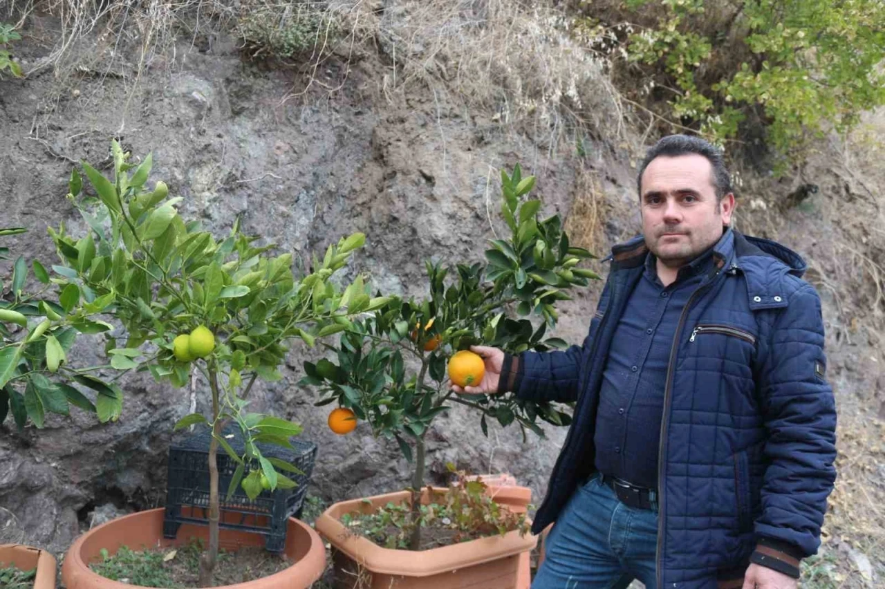 Çorum’un Oğuzlar ilçesinde yaşayan 44 yaşındaki marangoz, karasal iklimin yaşandığı bölgede ürettiği tropikal meyve ve zeytin ağaçlarına gözü gibi bakıyor.