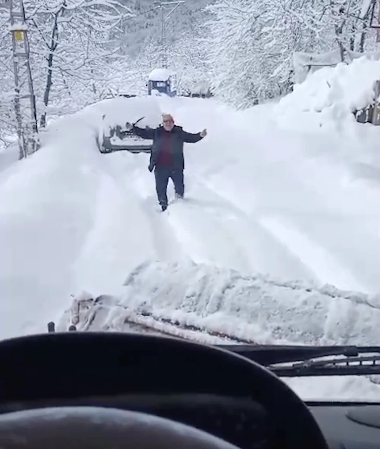 Kastamonu’da son bir haftadır etkili olan kar yağışı sebebiyle, yüzlerce köyün yolu ulaşıma kapandı. Kastamonu İl Özel İdaresi ekipleri, köy yollarının ulaşıma açılması için yoğun çaba sarf ediyor. Bozkurt ilçesine bağlı Yaşarlı köyünde yol açma çalışması sırasında, iş makinesini gören bir vatandaş oynayarak sevinç yaşadı. O anlar ise iş makinesi operatörü tarafından görüntülendi.
