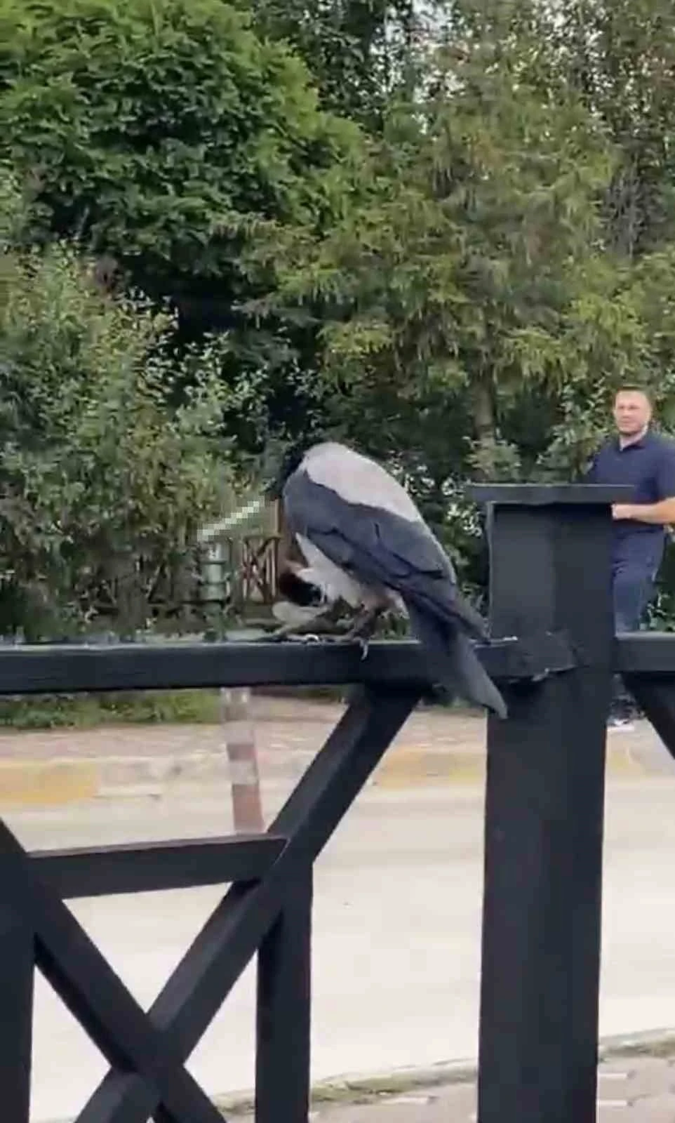 Tokat’ta bir karganın masadan sigara almasıyla sosyal medyada ilgi gören görüntüler izleyenleri güldürdü.