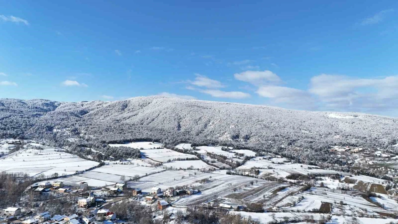 Kastamonu’nun İhsangazi ilçesindeki ormanlık alanı kaplayan beyaz örtü dronla havadan görüntülendi.
