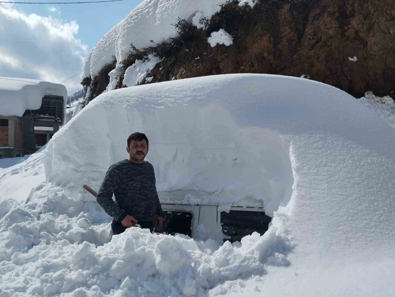 Köyde kar kalınlığının 2 metreye kadar ulaşması sonucu, Yıldız’ın arabası tamamen karla kaplandı. Saatler süren çabaların ardından Yıldız, kürekle karı temizleyerek aracını karın altından çıkarmayı başardı.