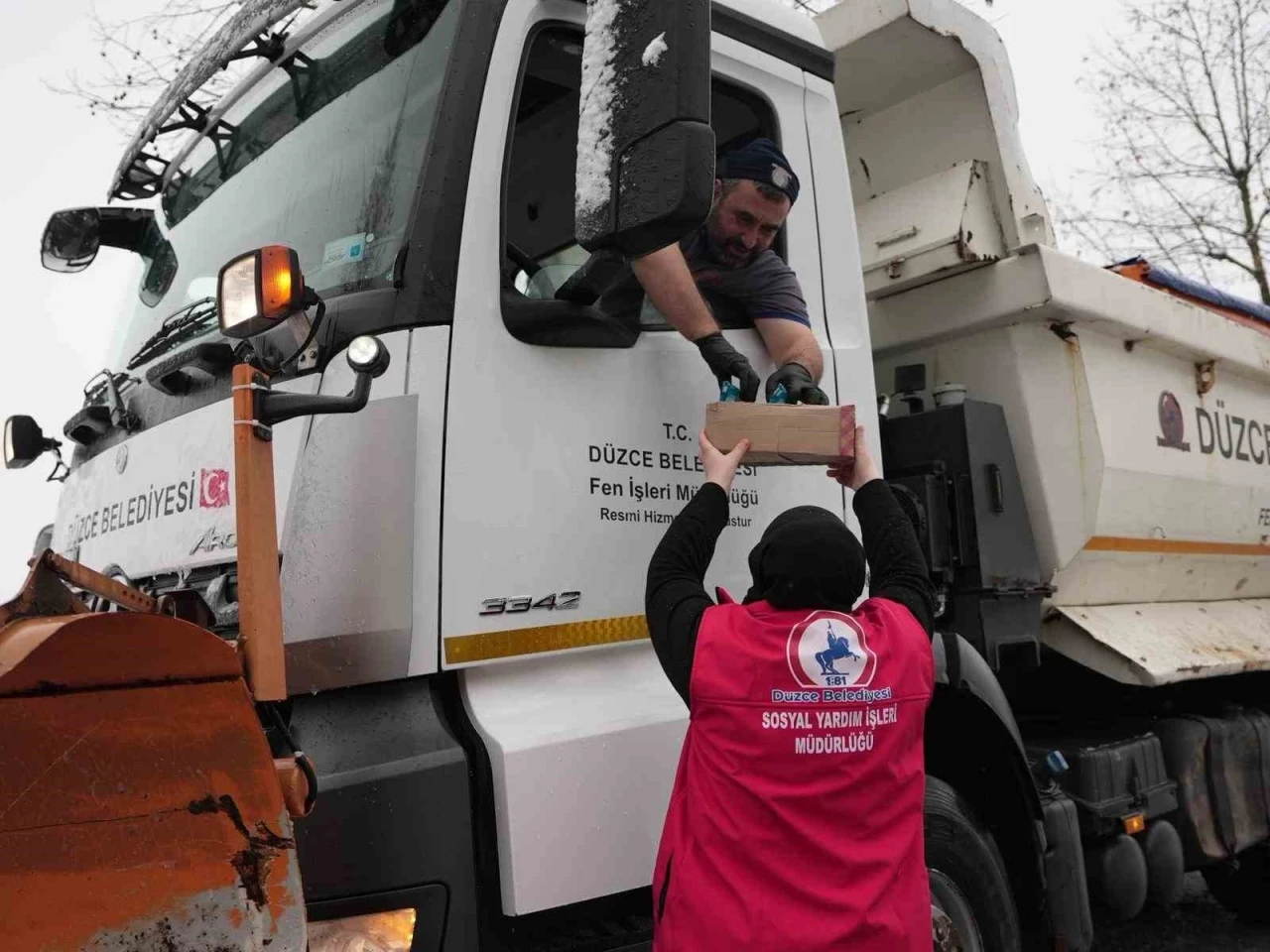 Düzce’yi etkisi altına alan kar yağışı nedeniyle ulaşımın kesintiye uğramaması ve vatandaşların mağduriyet yaşamaması adına mücadele çalışmalarını yoğun şekilde sürdüren Düzce Belediyesi, özveriyle görevlerini yerine getiren ekiplerine her türlü desteği sağlıyor. Düzce Belediyesi Sosyal Hizmetler Müdürlüğü, yoğun kar yağışı altında ve soğuk havada çalışan ekiplere moral vermek amacıyla sıcak çay ve kek ikramında bulunurken, ekipler de ikram sayesinde kısa bir mola vererek sıcak çay ile içlerini ısıttı.
