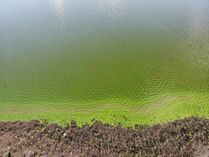 Öte yandan, yeşile bürünen baraj gölü havadan görüntülendi. Dron ile çekilen görüntülerde gölün kıyı şeridinin tamamen yeşile büründüğü görüldü.