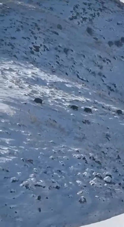 Kars’ta etkili olan sert kış şartları ve kar örtüsünün uzun süre yerde kalması nedeniyle yiyecek bulmakta zorlanan yaban domuzları, sürüler halinde yerleşim yerlerine inmeye başladı. Özellikle köylere yakın bölgelerde görülen domuz sürüleri, cep telefonuyla kaydedildi.