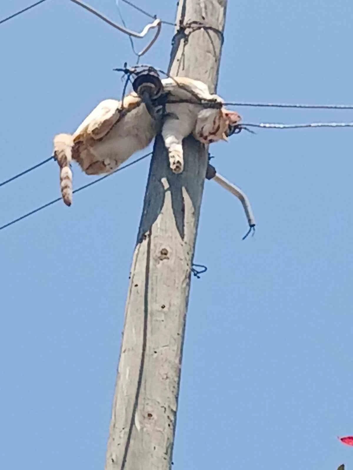 Kars’ın Digor ilçesi Karabağ köyünde tırmandığı elektrik direğinde mahsur kalan kediyi görenler durumu 112 Acil’e bildirdi. Köye gelen Araas elektrik ekipleri direklerdeki akımı keserken itfaiye ekipleri de, yangın merdiveni ile direkte mahsur kalan kediye ulaştı. Sıcakta uzun süre bekleyen kedi yapılan çalışmalarla kurtarıldı.