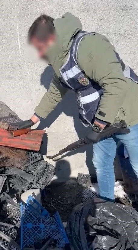 Polis ekiplerince ikametin arkasında bulunan ve hurdalık olarak kullanılan yerde yapılan aramada AK 47 Kalaşnikof tüfek, 2 adet AK 47 Kalaşnikof tüfek şarjörü, 1 ruhsatsız tabanca ve 1 adet pompalı tüfek ile ele geçirildi.