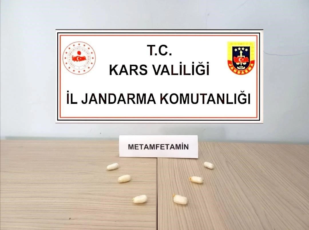 Kars’ta makatında sakladığı 6 parça uyuşturucu ile yolculuk eden İranlı 1 kişi yakalandı. İranlı kuryenin makatından 6 parça halinde 41 gram Metamfetamin cerrahi müdahaleyle çıkarıldı.