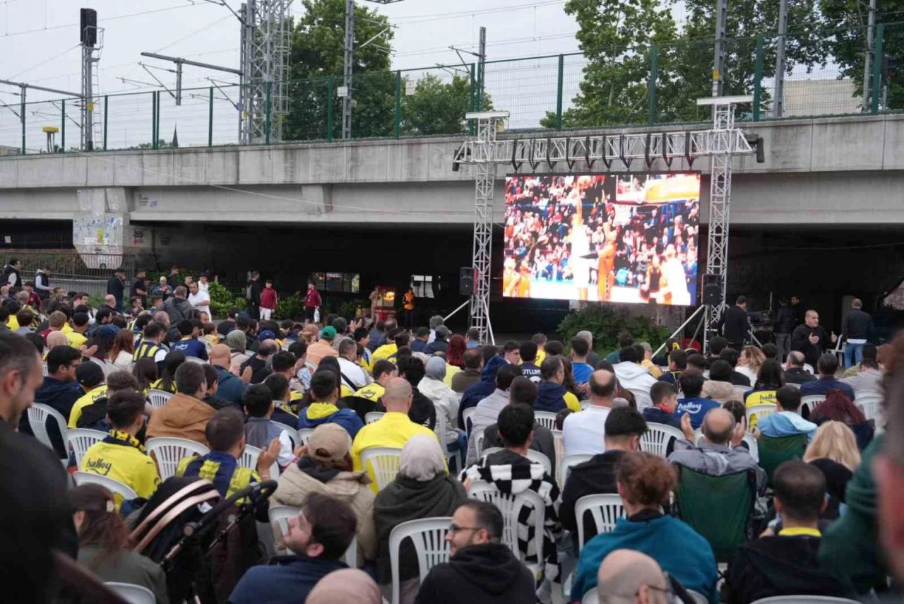 Kartal’da basketbol severler, THY EuroLeague Finali’nde Fenerbahçe Beko’yu desteklemek için kurulan dev ekrandan yayınlanan mücadeleye yoğun ilgi gösterildi.