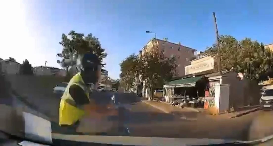 Kartal’da seyir halindeki otomobil ile motosiklet çarpıştı. Kazada, motosiklet sürücüsü havaya savrularak yere düştü. O anlar araç kamerasına yansıdı.