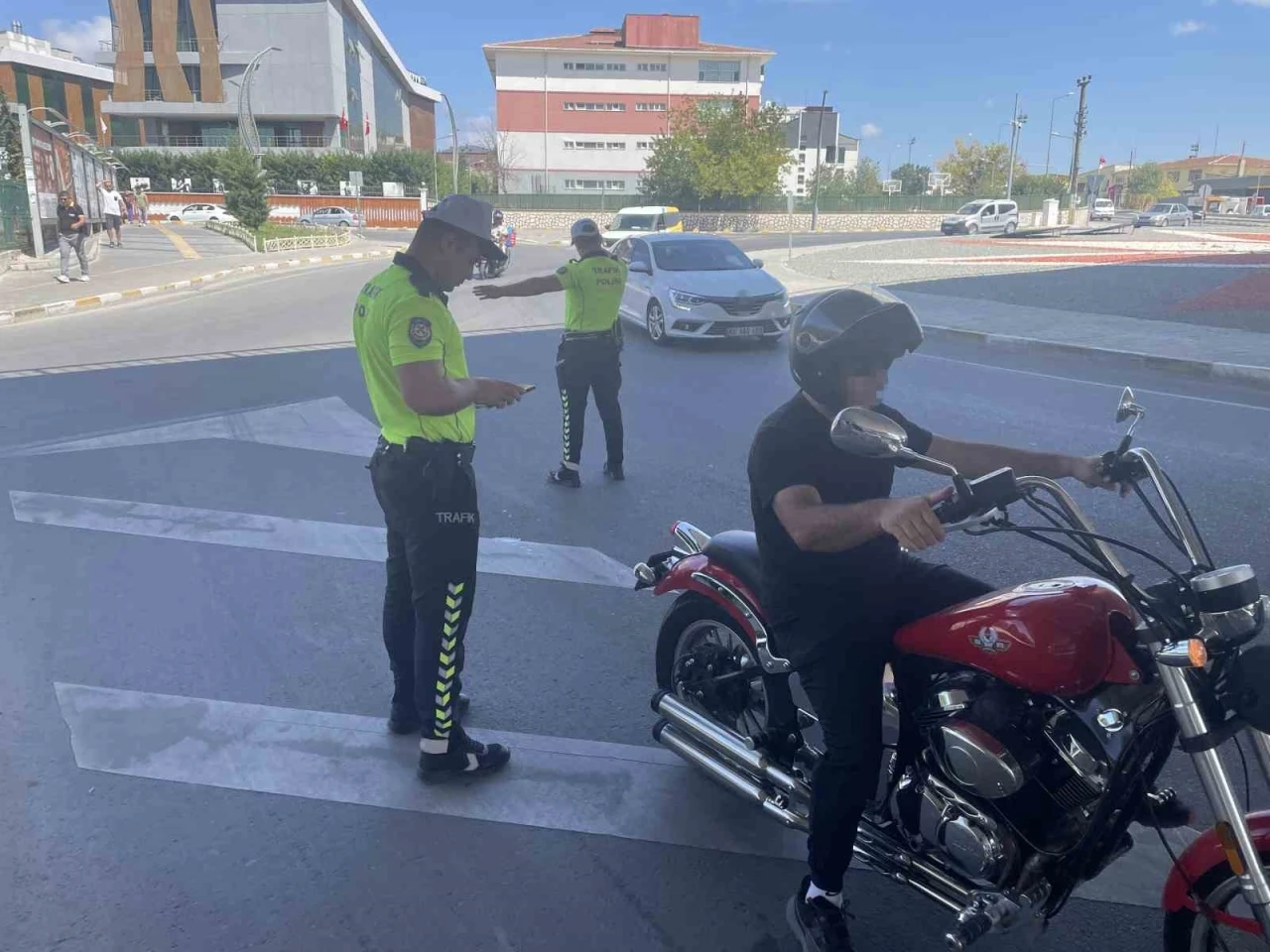 Kapaklı İlçe Emniyet Müdürlüğü ekipleri tarafından Kapaklı Yıldızkent Köprülü Kavşağı’nda motosikletli sürücülere yönelik denetim gerçekleştirildi. Yapılan denetimlerde kask takmayan 4 sürücüye 3 bin 972 lira ceza yazıldı.