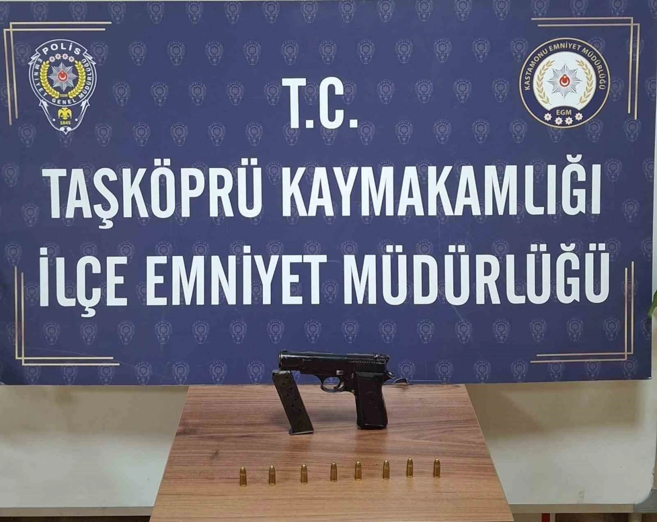 Kastamonu’nun Taşköprü ilçesinde polis ekipleri tarafından yapılan kontrollerde, 3 adet tabanca ele geçirildi. Konuyla ilgili 3 şahıs hakkında adli işlem başlatıldı.