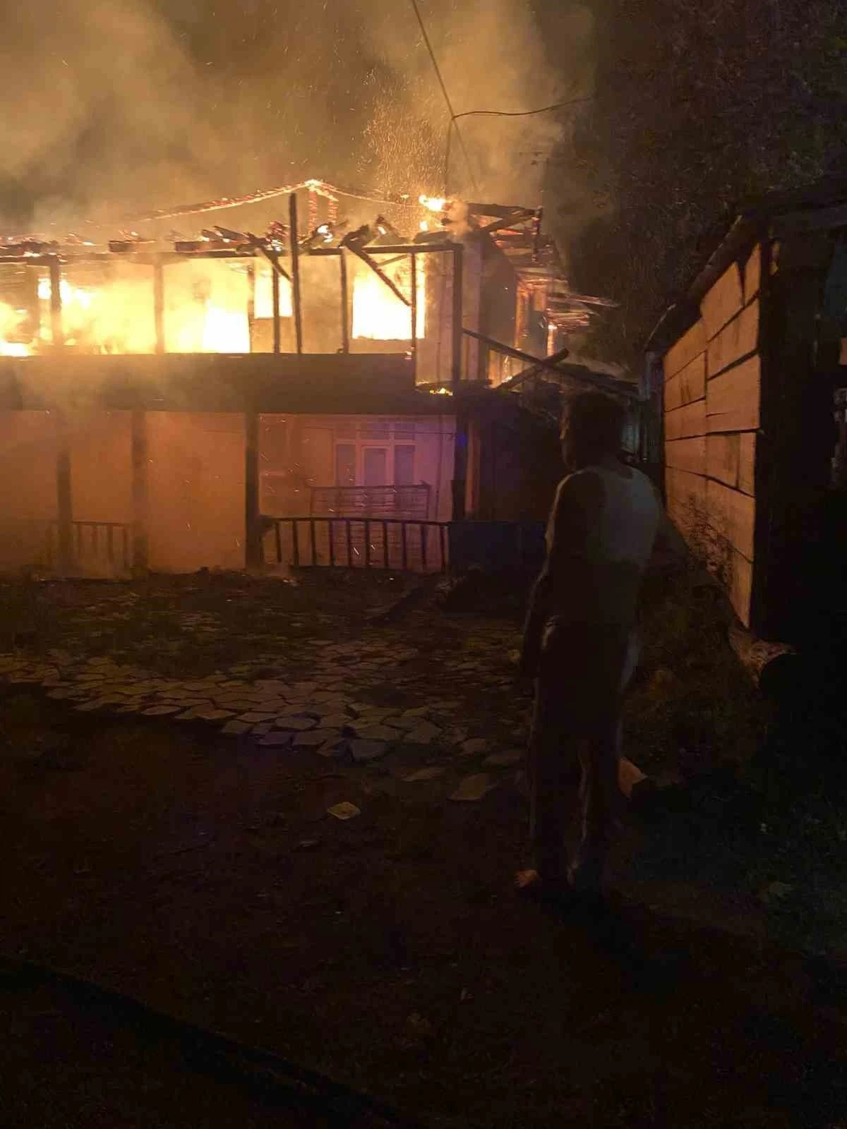 Kastamonu’da alevlere teslim olan iki katlı ahşap ev kullanılmaz hale gelirken, yangın itfaiye ekipleri tarafından söndürüldü.