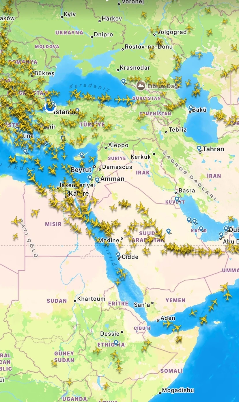 Türk Hava Yolları’nın İstanbul’dan Dubai’ye gitmek için havalanan TK760 kuyruk tescilli Airbus A330 tipi uçağı da, hava sahasının kapatılması üzerine Antalya üzerinden İstanbul’a geri döndü. AJet’in ise Dammam, Dubai ve Sharjah şehirlerine bugün yapılması planlanan seferleri iptal edildi.