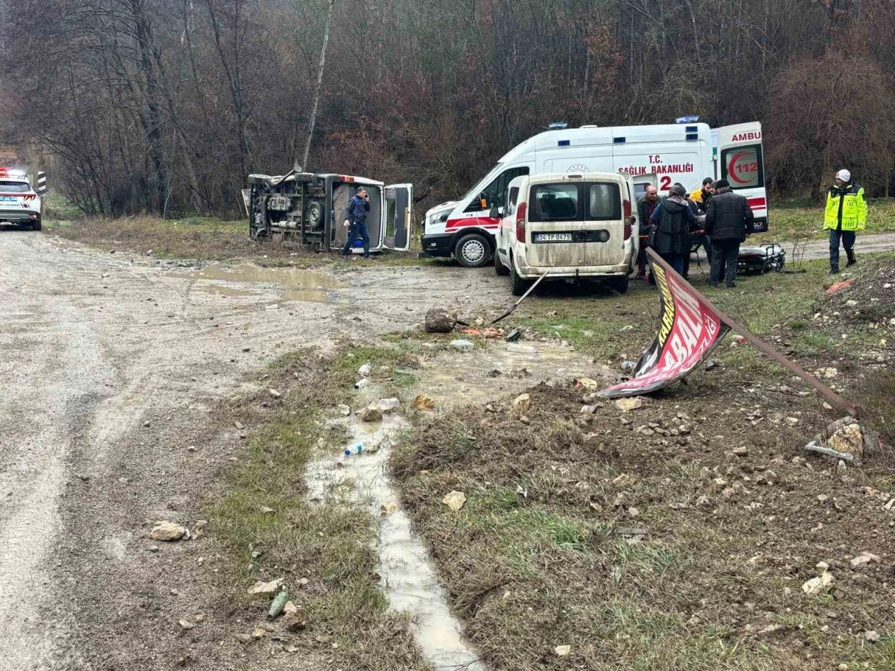 Kaza, Mudurnu-Akyazı kara yolunda meydana geldi. Edinilen bilgiye göre, Akyazı istikametinde seyreden Kadir K. yönetimindeki 06 KJ 481 plakalı minibüs, yağışlı havanın etkisiyle kayganlaşan yolda kontrolden çıktı. Sürücüsünün direksiyon hakimiyetini kaybettiği minibüs yol kenarındaki boş alana yan devrildi. Meydana gelen kazada, araçta yolcu konumunda bulunan Hanife K. ve Şükran Ü. yaralandı. Durum 112 Acil Çağrı Merkezi’ne bildirildi. İhbar üzerine bölgeye sağlık ve jandarma ekipleri sevk edildi. Kazada yaralanan 2 kişi, sağlık ekipleri tarafından yapılan ilk müdahalenin ardından Mudurnu İlçe Devlet Hastanesi’ne kaldırıldı. Kazayla ilgili inceleme başlatıldı.