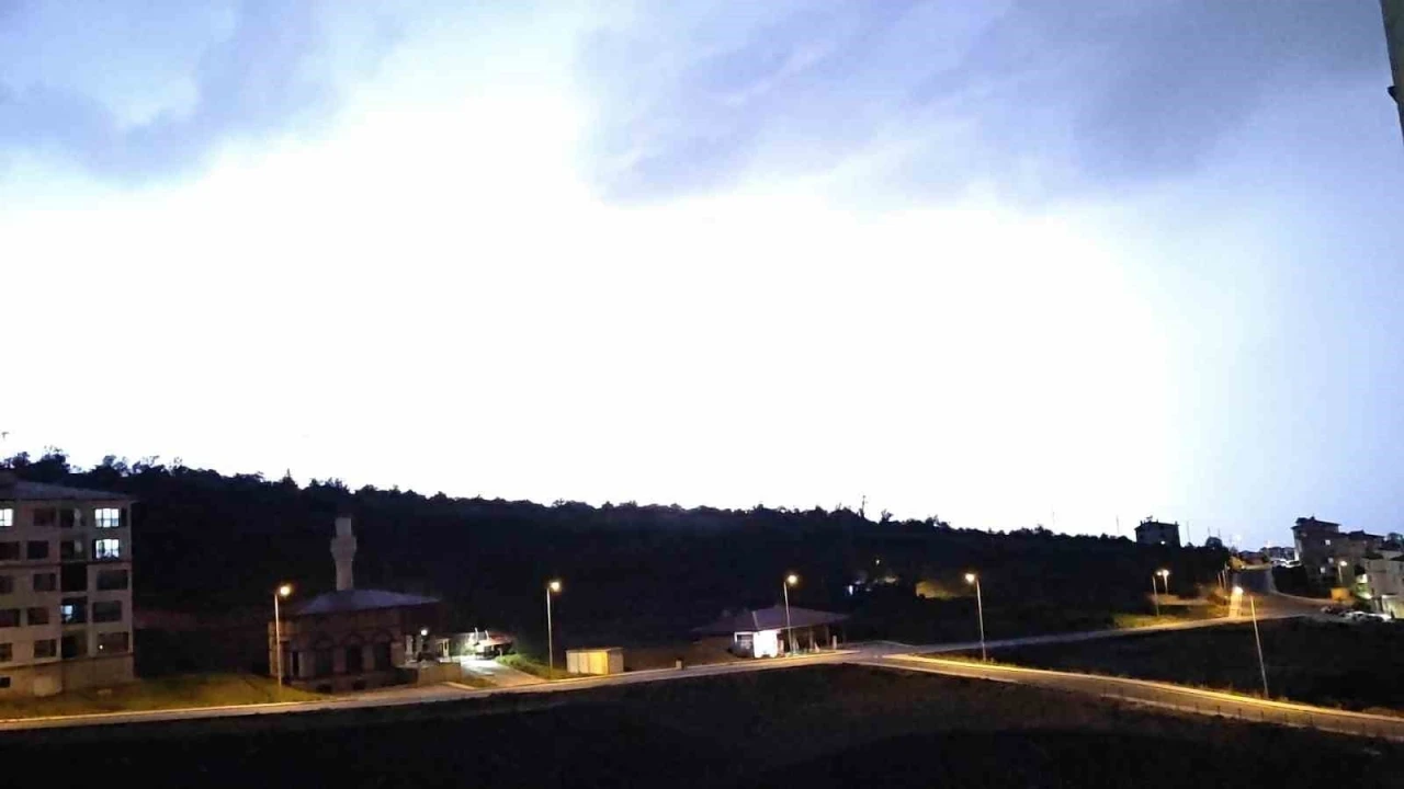 Kayseri'de etkili olan sağanak yağışlı hava ile birlikte, yıldırımlar geceyi aydınlattı.
