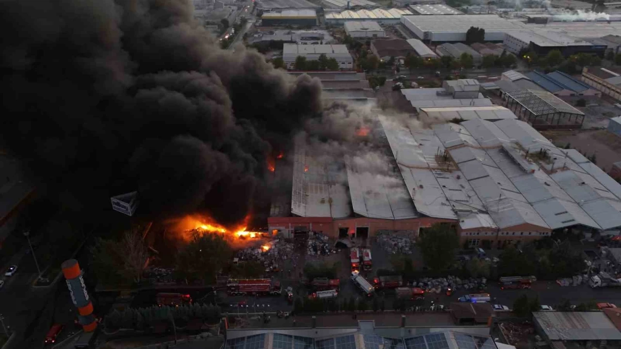 Kayseri’de bir tekstil fabrikasında çıkan yangına ekiplerin müdahalesi devam ediyor. Alevler çevreyi aydınlatırken, yangın havadan da görüntülendi.