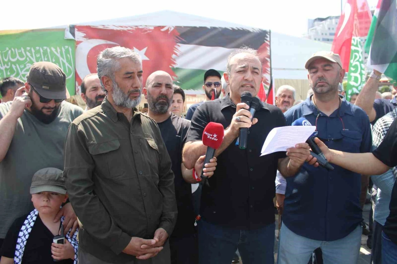 Cumhuriyet Meydanı’nda düzenlenen basın açıklamasında konuşan Erdal Ergenç; "Bizler; yürekleri yangın yerine dönüş, bir asırdan fazladır parçalanan, tutuşturulan, enkaz altında kalan, araçlarda mahsur kalıp küçücük vücuduna onlarca mermi isabet eden, şarapnel parçaları ile uzuvlarını kaybeden, canlı canlı ateşe verilen canların acısını yaşayan milyonlarca insanın iç sesi olarak Küresel Gazze Yürüyüşü’ne katılmak üzere Refah Sınır Kapısı’na gidiyoruz. Biliyoruz ki ümmetin her bir ferdinin aklı ve kalbi dayanılmayacak kadar acılar çekiyor ve kabullenemiyoruz bu zulmü, soykırımı, katliamı. insanlık onurunun bu kadar yerlerde süründüğü başka bir tarih var mıdır bilmiyorum. Milyarlarca insanın içine bir grup Siyonist katil çetesi girmiş, şımarık, fütursuz ve ahlaksızca insanlık onurunu yerle bir etmeye çalışıyorlar. Kendilerine tehdit gördükleri her unsuru, askeri olsun ya da olmasın imha etmekten asla çekinmiyorlar. İnsanlık adına bu ahlaksızca yürütülen ve dünya insanlarının gözünün içine baka baka işlenen suçların elbette hesabını verecekler. Gelinen noktada artık hükümetlerin, devletlerin, dünya devlerinin bu şımarık katliamcı çeteye söyleyecek sözleri kalmamıştır. Politik olarak söylenecek her söz, her kınama, her nota verilmiş olup bu soykırımcı çeteye güç yetirememektedirler. Küresel Gazze Yürüyüşü bu çaresizliğe, bu ezilmişliğe ve bu suskunluğa bir çığlık olmak üzere Refah Sınır Kapısı’na kadar yürümek için kararlı ve inançlıdır. Bizler de sizlerin evlatları ve temsilcileri olarak bu Küresel Gazze Yürüyüşü’ne katılarak sesinizi Gazze’de, hayatta kalmayı başaran insanlara umut olarak ulaştırmak üzere Mısır’a hareket ediyoruz. Barışçıl, aynı zamanda hiçbir maddi güce ve kaba kuvvete başvurmadan tamamen sivil bir inisiyatif ile bu yolculuğa çıkıyoruz" dedi.