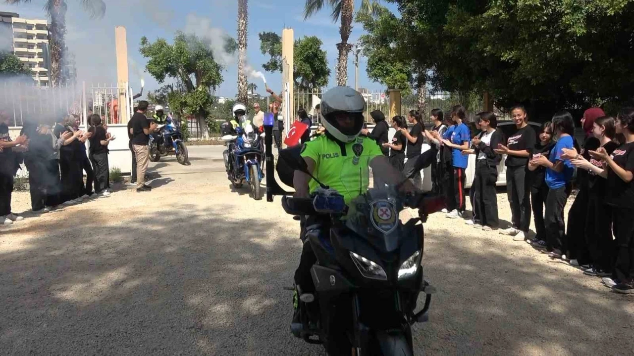 Mersin’in Erdemli ilçesinde öğrenciler ve minibüsçüler trafik ekiplerinin haftasını sürpriz bir etkinlikle kutladı. Kaza anonsuyla Kocahasanlı Anadolu Lisesine gelen ekipler meşaleler ve alkışlarla karşılandı, ardından kutlama pastası kesildi.