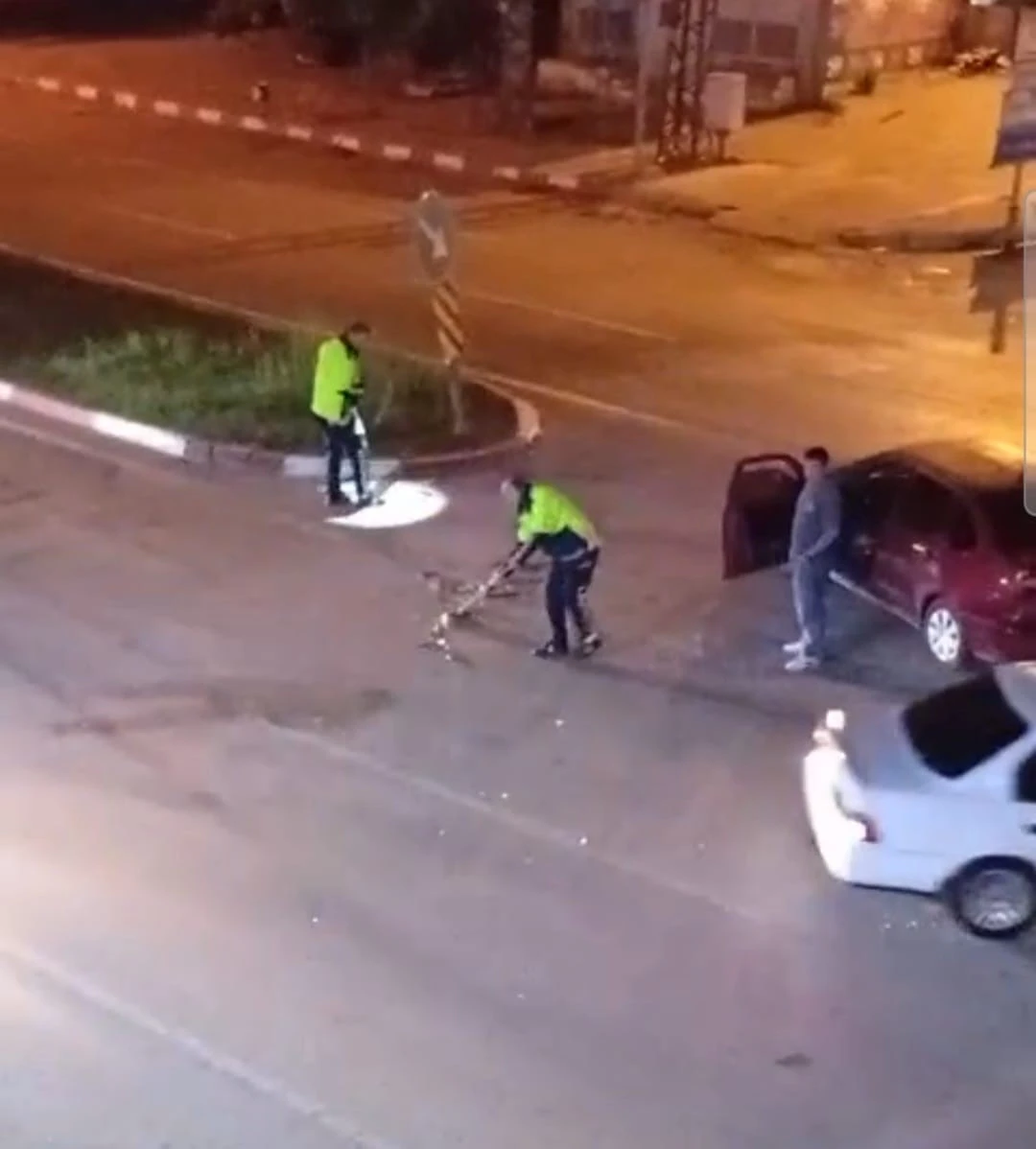 Edinilen bilgiye göre kaza, Kadirli merkeze bağlı Kamil Kara bulvarı Sumbas trafik ışıkları kavşağında meydana geldi. Kazada iki otomobilin çarpışması sonucu araçlarda maddi hasar meydana geldi. Kazaya karışan araçların kaldırılmasından sonra, araçlardan kopan parçaları, trafik polisi eline süpürge alarak yoldan temizledi. O anlar cep telefonu kamerasına yansıdı.