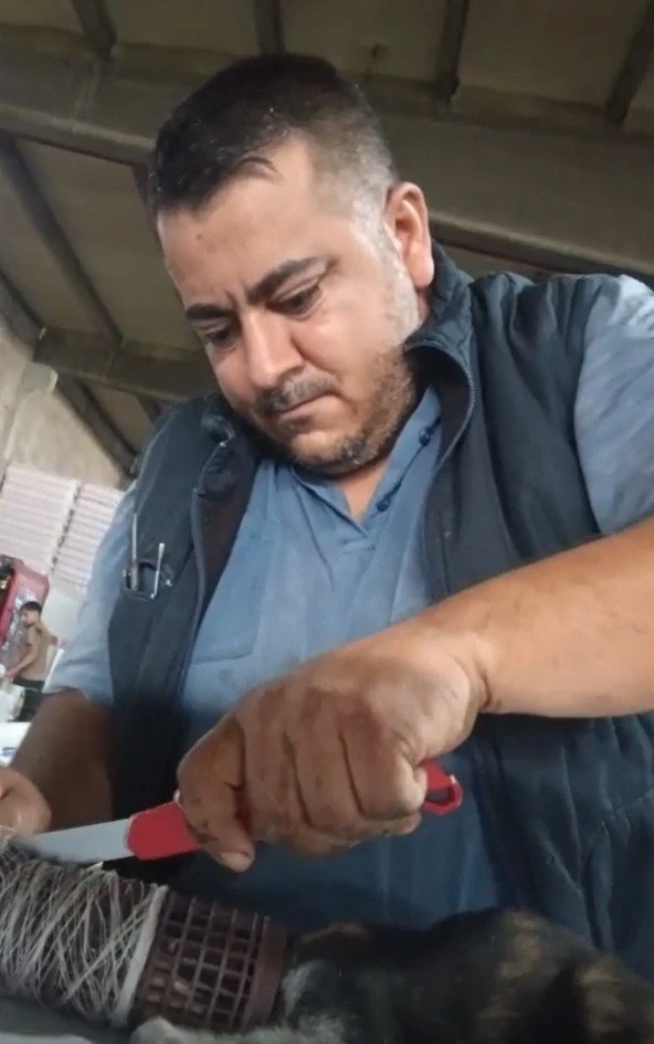 Gaziantep’te bir fabrikada sabah saatlerinde iş yerine gelen Nevzat Çağan, kapıyı açtığında kafasını plastik bobine sıkıştıran kediyle karşılaştı. Şef, yardım bekleyen kediye anında müdahale etti. Kediyi dikkatlice sakinleştiren şef, ardından kedinin kafasına dolanan ipli plastik kafesi bıçakla keserek özgürlüğüne kavuşturdu. O anlara tanıklık eden çalışanlar duygusal anlar yaşarken, kedinin kurtulur kurtulmaz hızla uzaklaşıp gözden kaybolması yürekleri ısıttı.