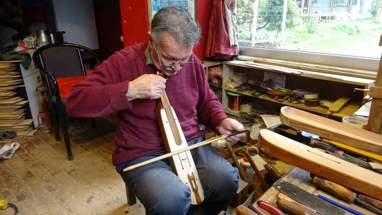 Trabzon’un Sürmene ilçesinde yaklaşık 65 yıl önce hiç kimseden eğitim almadan kemençe yapmaya başlayan 81 yaşındaki Hasan Sancak, bugüne kadar tamamen el yapımı 400 kemençe yaptı.