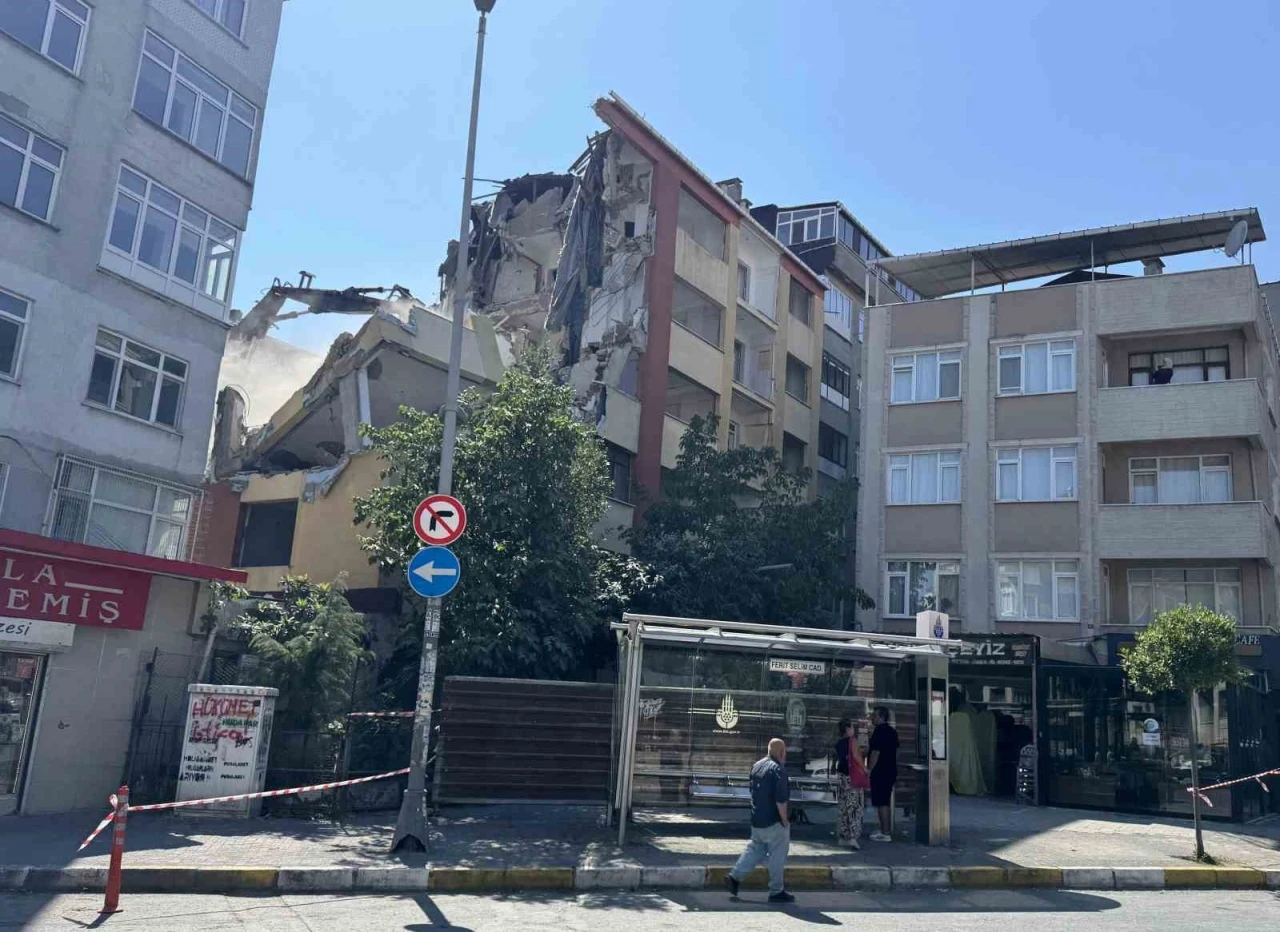 Bahçelievler'deki yıkımda 3 kat birden çökünce bina önündeki otobüs durağında bekleyenler büyük panik yaşadı