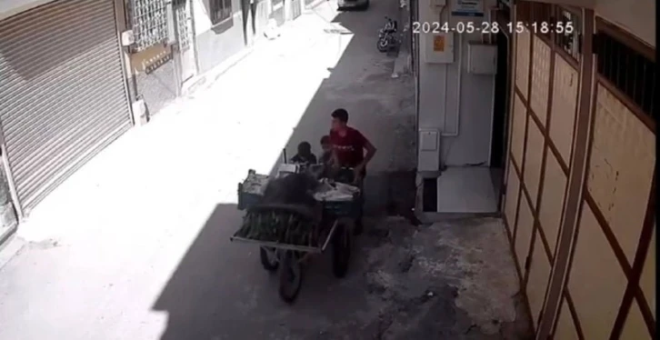 CHP’li Kilis Belediyesinde görev yapan zabıta ekipleri, mahalle arasında seyyar satıcılık yapan bir kişi ile 2 çocuğu kovaladı. Zabıta ekipleri, terazisini alarak kaçmaya çalışan seyyar satıcıyı arkasından koşarak yakaladı. Ekipler, satıcıyı yere yatırarak zorla terazisini aldı. Bu esnada, satıcının yanındaki çocukların tuttuğu salatalık yüklü seyyar araba devrildi. Çocukların yaşadığı korku güvenlik kamerasına yansıdı
