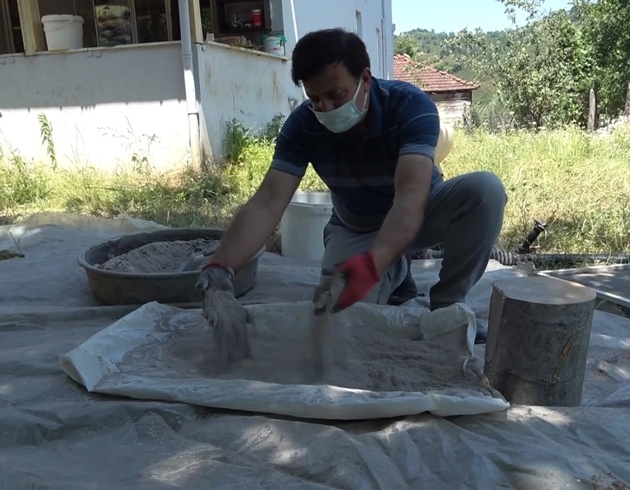 Yukarı Kestanepınar Mahallesi’nde fındık üretimi yapan Saadettin Minüz, sobadan elde ettiği odun külünü elekten geçirerek bahçesine serpiyor. Hem gübreleme hem de böceklerle mücadele amacıyla kullanılan bu doğal yöntem sayesinde Minüz, geçen sezon 54 randıman fındık elde etti. "İlaç yerine kül kullandım, kokarcalar yok oldu"
