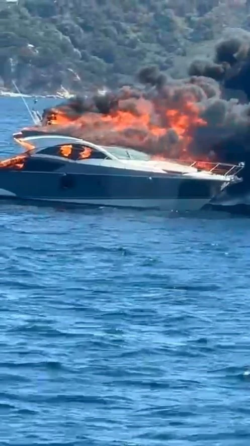 Kınalıada açıklarında seyir halindeki lüks bir yat, henüz belirlenemeyen bir nedenle alevlere teslim oldu. Olay yerine kısa sürede deniz polisi sevk edilirken, yatta bulunan yolcular can simitleriyle kendilerini denize atarak kurtulmaya çalıştı.