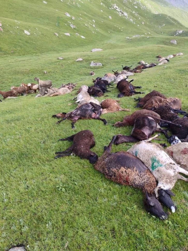 Kırgızistan’ın Cazı Keçüü yaylasında yıldırım düşmesi sonucu 250 koyun telef oldu.