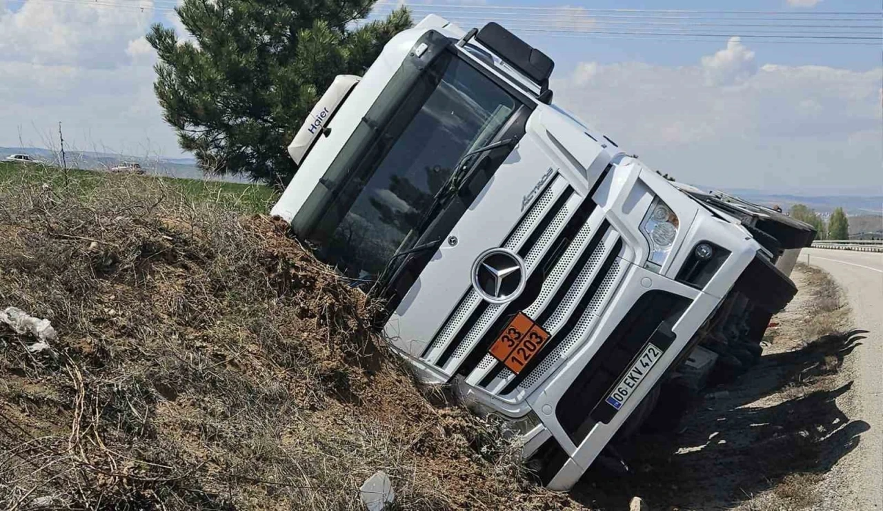 Kırıkkale’de kontrolden çıkan akaryakıt yüklü tanker şarampole devrildi.