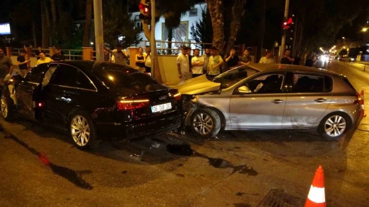 Antalya’da kırmızı ışık ihlali yapan lüks aracın neden olduğu zincirleme trafik kazasında ortalık savaş alanına döndü. Kaza nedeniyle trafik uzun süre kilitlendi.