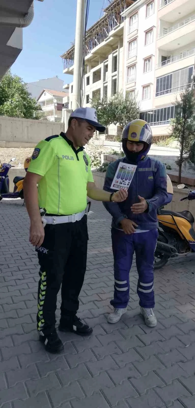 İl merkezinde faaliyet gösteren 22 işletme, 4925 sayılı Karayolları Taşıma Yönetmeliği’nin 15 Mayıs 2025 tarihli (P) türü yetki belgesi hükümleri hakkında bilgilendirildi. İşletmelere, trafik güvenliğinin sağlanmasına yönelik olarak hazırlanan broşürler dağıtıldı 46 motokuryeye de teorik eğitimler verilerek, bilgilendirme broşürleri ulaştırıldı. Motokuryelere trafik ışıklarına riayet etmeleri, kaldırımlarda motosiklet kullanmamaları, trafikte diğer sürücülerle eşit sorumluluk taşıdıkları hatırlatıldı.