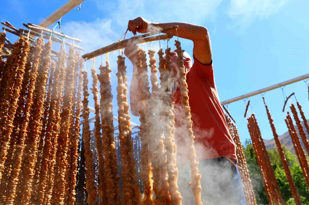 Elazığ’da kış aylarının vazgeçilmezi olan orcik yapımı başladı. Üreticilerden Tayfun Erdem, asırlardır süren bu geleneği doğal yöntemlerle sürdürdüklerini belirtti. Elazığ’ın Değirmenönü (Zerteriç) köyünde kış aylarının vazgeçilmez lezzeti orcik yapımı, asırlardır süregelen gelenekler çerçevesinde devam ediyor. Üzüm ve ceviz hasadının ardından köy halkı, orcik üretimi için mesaiye başladı. Üzümler sıkıldıktan sonra şıra, özel toprakla mayalanıyor ve kazanda kaynatılıyor. Yüzeye çıkan "paf" temizlendikten sonra un eklenip bulamaç haline getiriliyor ve cevizler ipe dizilerek karışıma batırılıyor. Bu gelenek, köy halkının hem geçim kaynağı hem de kış aylarının vazgeçilmez lezzeti olmaya devam ediyor. Emekli olduktan sonra 25 yıldır orcik ve pestil üretimini sürdürdüğünü belirten Tayfun Erdem, "Orcik sezonu başladı. Hemen hemen her gün yapıyoruz. Önce üzümü sıkıyoruz. Ondan sonra özel toprağından şıranın içerisine katıyoruz. Bunun ekşiliğini alıyor. Daha sonra üzümü kazana doldurup kaynatıyoruz. Bunun yüzüne çıkan pafını alıyoruz. Akşamdan kaynatıyoruz, sabaha kadar dinleniyor. Ondan sonra tekrar kazana çekiyoruz ve tekrar kaynatıyoruz. Akabinde un katıyoruz ve liviç yapıyoruz ve tekrar kazana dolduruyoruz. Bir saate yakın karıştırıyoruz. Ondan sonra orcik yapımına başlıyoruz. Üzüm ve ceviz kaliteli olacak. Özellikle şırasında oluşan o pafı almak lazım. Talep çok güzel. Bazen talepleri yetiştiremiyoruz bu da kaliteye bağlı. Genelde cevizli sucuk diyorlar bizim Elazığ’da ’Orcik’ olarak geçiyor" dedi. Orcik’in köy yaşamındaki önemine dikkat çeken Bilal Erdem ise, "Köyümüzde şu anda üzüm ve ceviz hasadı zamanıdır. Bu hasatlardan elde edilen Anadolu’muzun en güzel tatlarından biri olan orcik yapımını yapmaktayız. Orcik yapımı ortalama her bir işlemler için bir hafta sürmektedir. Bir gün öncesinden üzüm sıkımından başlar, ardından cevizler ipe dizilir. Daha sonra elde edilen şıra ile içine karışım yapılan unla bulamaç dediğimiz madde elde edilir. Tamamıyla el ürünü ve doğal ve organiktir. Köyümüzde meşhur olduğu için hemen hemen her evde yapılmaktadır. Köyümüzün geçim kaynağı da bu şekildedir" şeklinde konuştu.