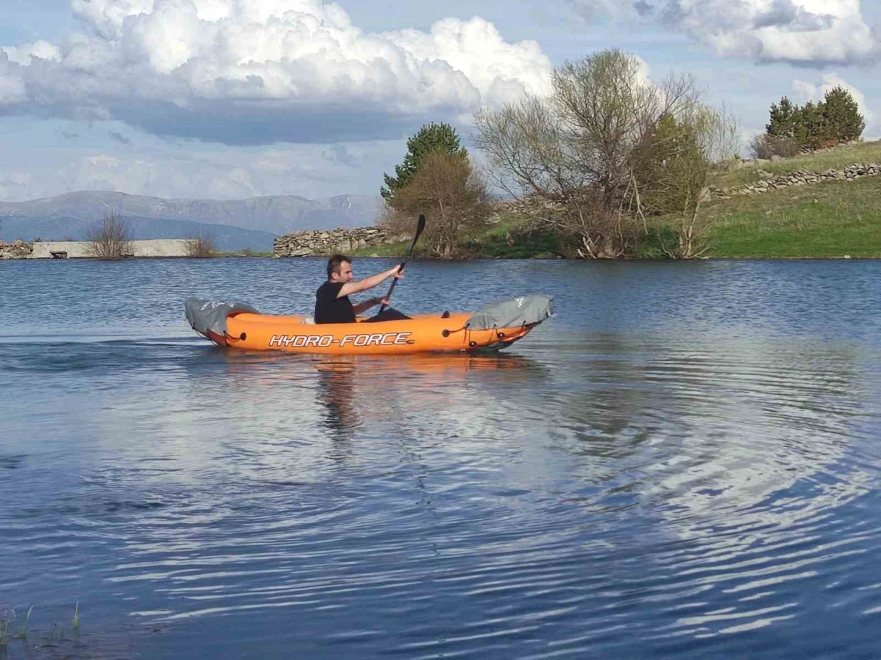 Ardahan’ın Posof ilçesinde doğası ile hayran bırakan Kızıl Göl’de kanoya binenler tabiatla içi içe farklı bir keyif yaşadı.