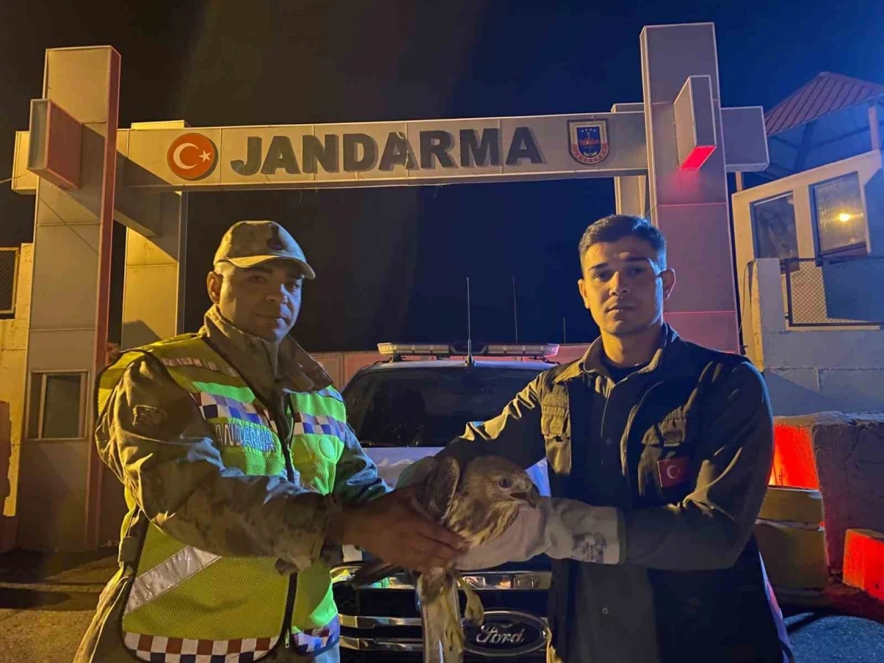 Van’ın Muradiye ilçesinde jandarma personeli tarafından bitkin halde bulunan kızıl şahin, tedavisi yapılmak üzere yetkililere teslim edildi.