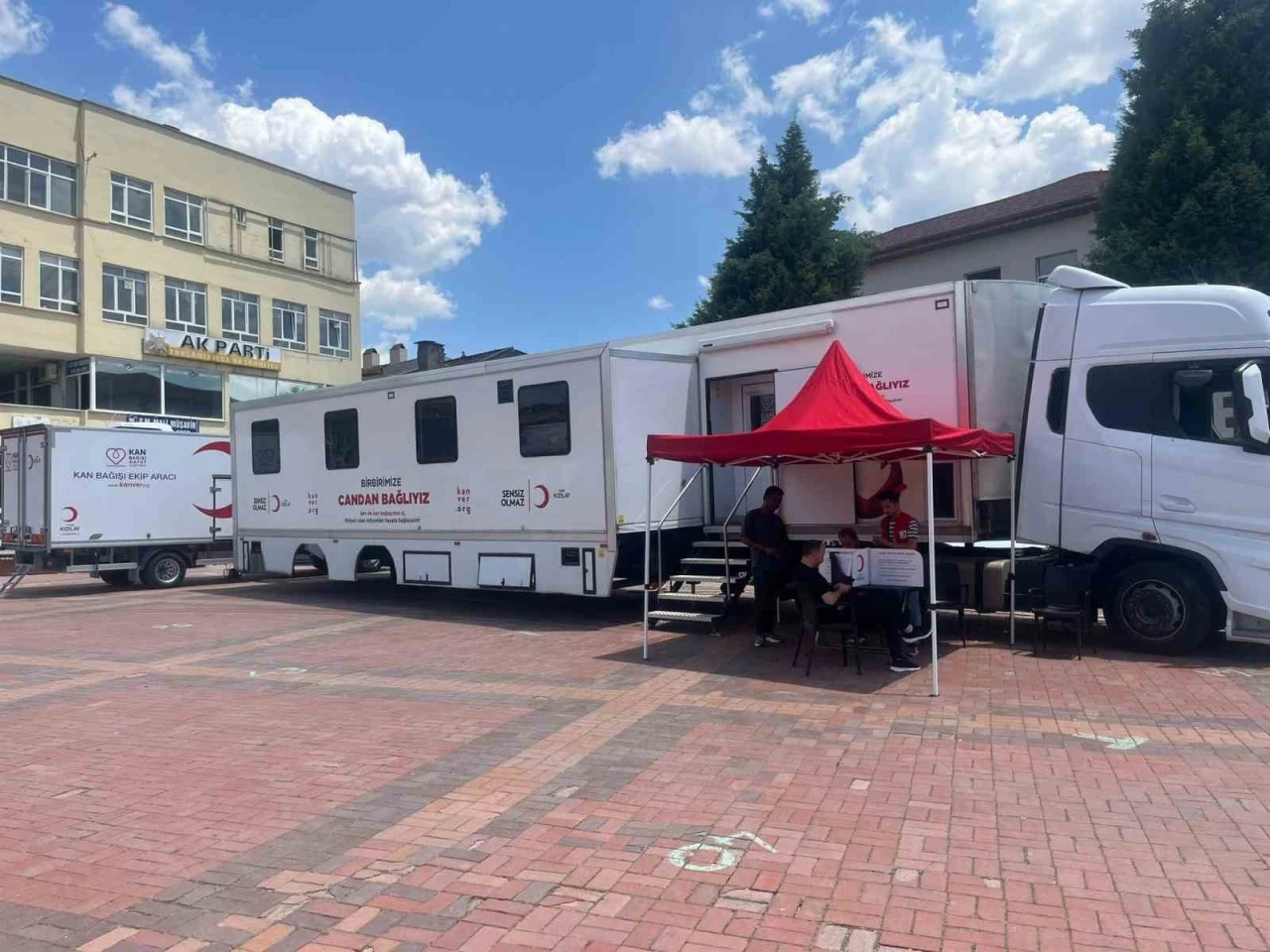 Kızılay’ın gezici kan bağışı tırı, kan stoklarına destek olmak amacıyla Tavşanlı Cumhuriyet Meydanı’nda vatandaşlardan kan bağışı kabul ediyor.