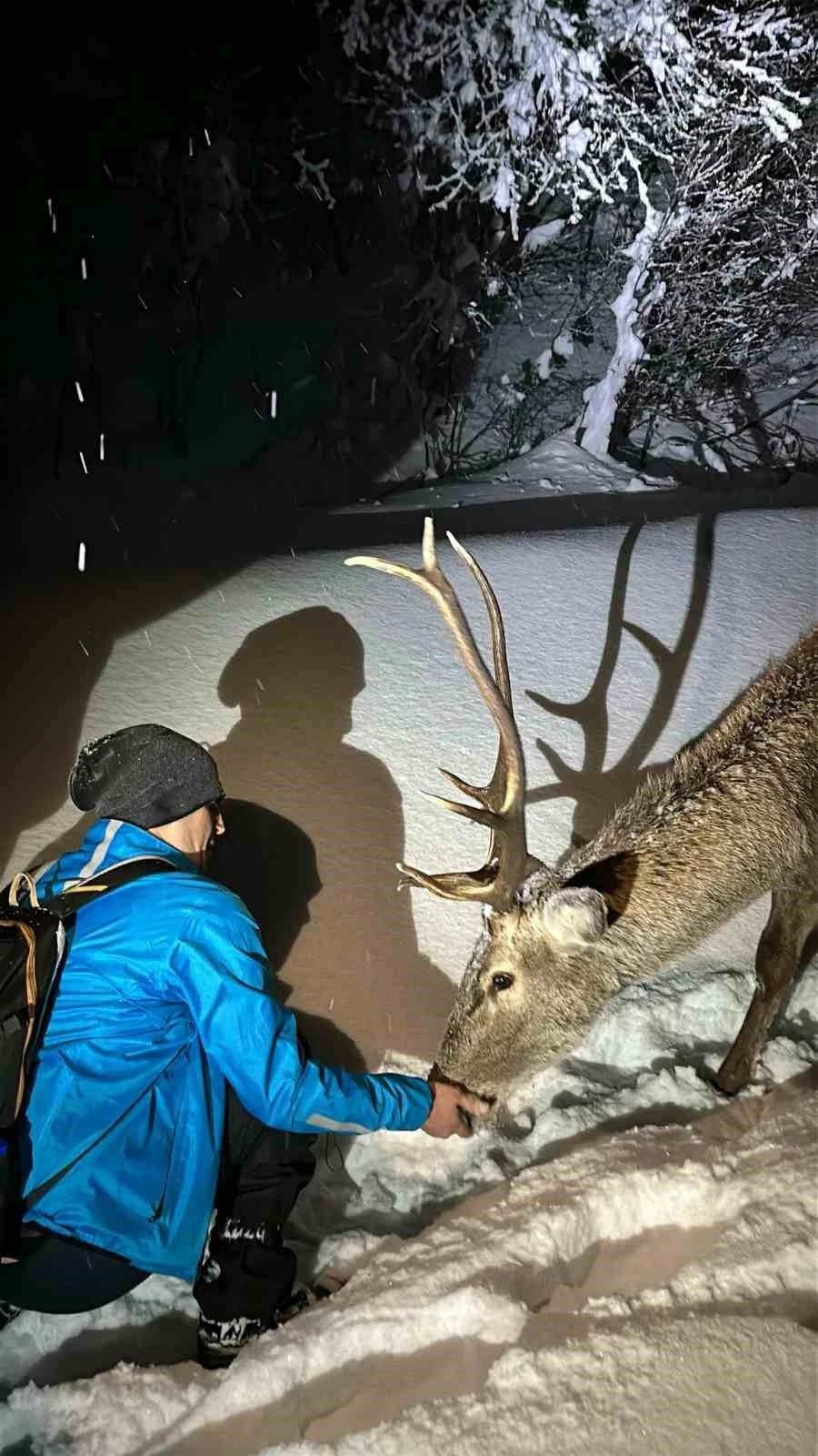 Kış tatili için Kocaeli’nin ünlü ilçesi Kartepe’ye gelen tatilciler, geçtiğimiz yıl Ormanya’dan doğaya salınan kızılgeyik ile karşılaştı. Evcil hareketler sergileyen geyik, gruptan kaçmak yerine kendisine ikram edilen bisküvileri yedi. Bu sevimli anlar, yüzleri gülümseten görüntülere yansıdı.