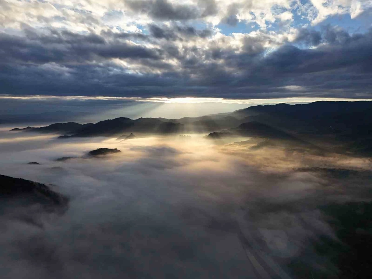 Çorum’da Osmancık ilçesinde dağları ve Kızılırmak nehrini kaplayan sis, kartpostallık görüştüler oluşturdu. Şehri saran sis, havadan görüntülendi.